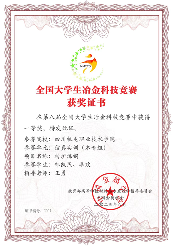 此次竞赛获奖,不仅为学校争得了荣誉,也进一步提升了学校冶金材料类专业在行业以及地方的影响力。未来,学校将继续深化产教融合工作,不断探索人才培养新模式,为行业和地方经济发展贡献更多力量。