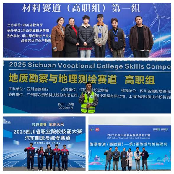 (教务处刘江祜)日前从四川省教育厅获悉,2025年四川省职业院校技能大赛135个(高职90个、中职45个)赛道(组)已全部完赛。根据《四川省教育厅关于公布2025年四川省职业院校技能大赛获奖名单的通知》,我校精心选拔组建的16支参赛团队,在竞技中最终斩获金牌2块、银牌4块、铜牌5块,共计11枚奖牌,以扎实的专业功底和出色的临场发挥展现了我校职业教育的丰硕成果。